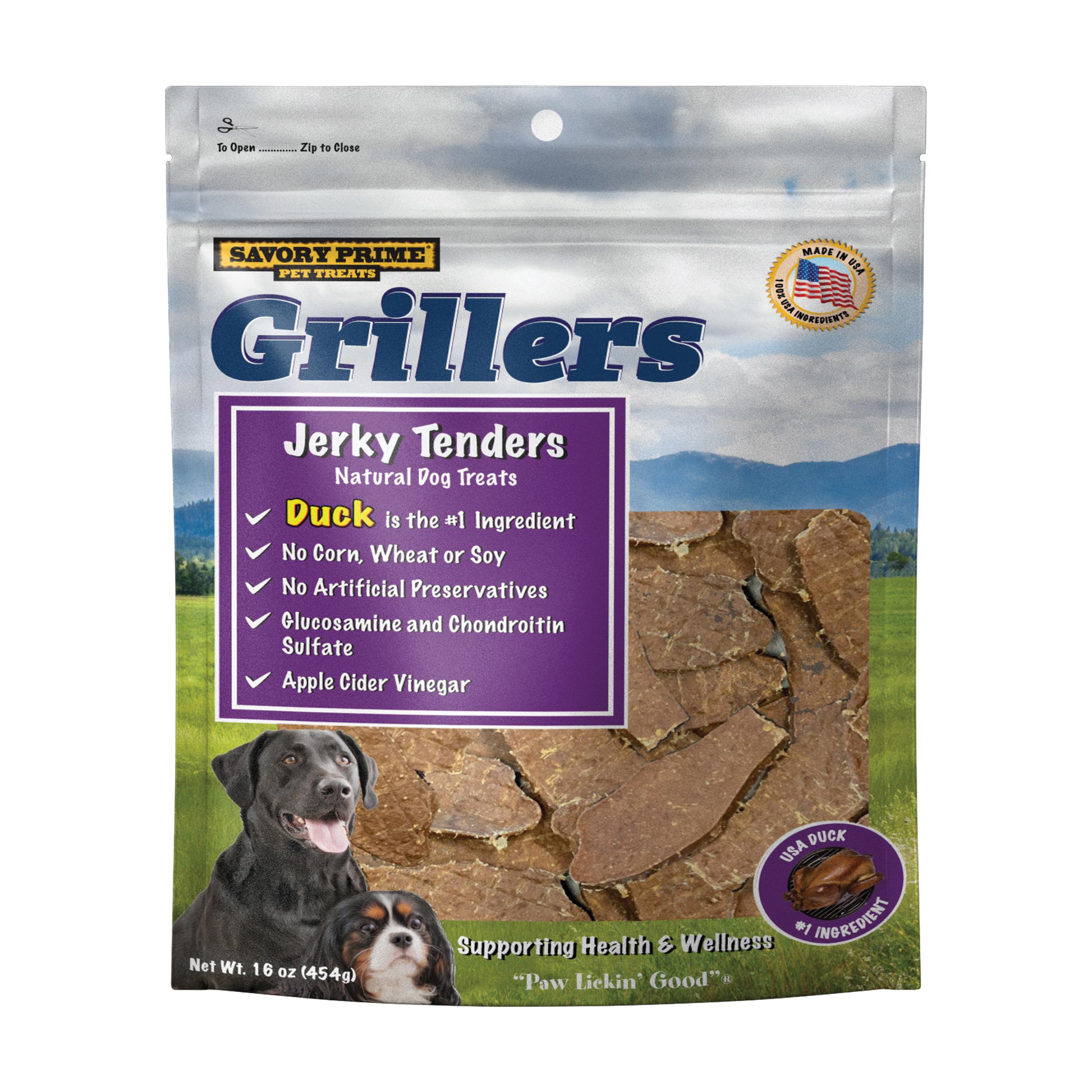 Savory Primes Grillers Jerky Tenders feature duck as the first ingredient as well as glucosamine and chondroitin to support bone and joint health.Specifications