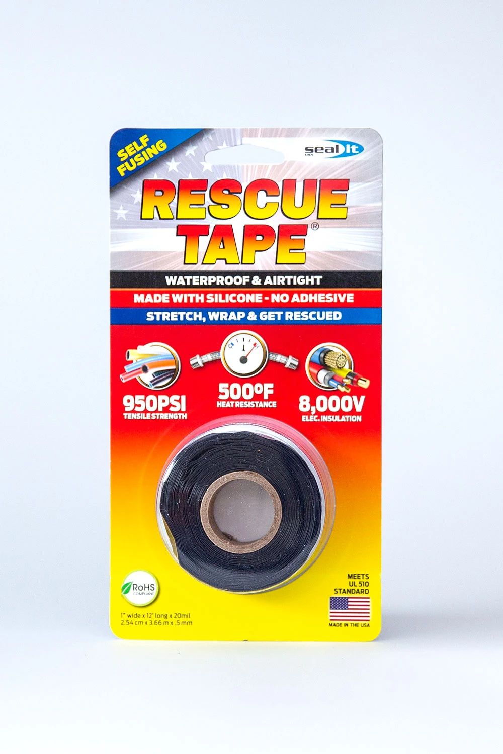 0.30 Thick Self-Fusing Premium Quality Silicone Used By The US Army As Part Of The Battle Damage Assessment and Repair Kits BDAR Carried On Military Vehicles and Tanks For Emergency Product For Plumbing Automotive Electrical and Industrial Repairs Creates A Permanent Airtight Watertight Seal In Seconds Repair and Seal Leaky Hoses Pipes Tubing Lines and Fittings Works Even Over Oily Or Dirty Surfaces Resists 500 Degrees and Remains Flexible To - 85 Degrees Insulates 8000V 950 PSI Tensile Strength Resists Fuels Oils Acids Solvent Salt Water Road Salt and UV Rays Meets and Significantly Exceeds Military Specifications MIL-Spec.Specifications