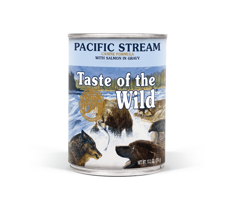 A great tasting complement to the dry Taste of the Wild recipes, the Pacific Stream Canine Formula with Salmon in Gravy will satisfy your pet's taste for wet food. This complete and balanced formula can also be fed as a solo diet.Specifications