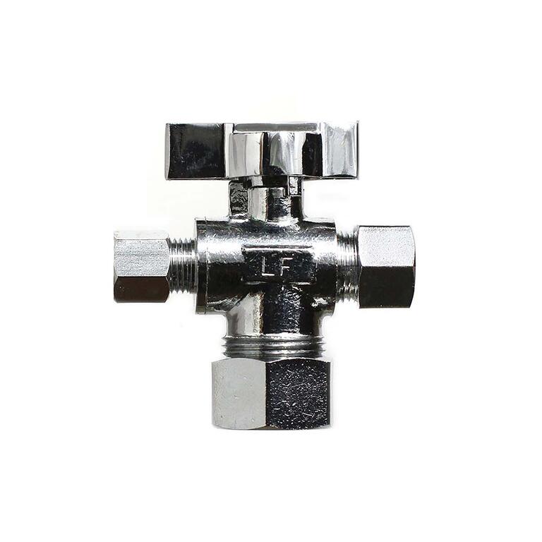 Nothing provides better control over water flow to the selected household fixtures like Thrifcos quarter-turn angle stop valve. No need to shut down the entire water supply as three compression connectors allow you to maneuver the water flow the way you want. The valve features a brass unibody construction thats coated with chrome for corrosion resistance. This valve also comes with high performance celcon system brass nuts and Teflon seats for watertight seal. Theres a brass ball mechanism for smooth operation.Specifications