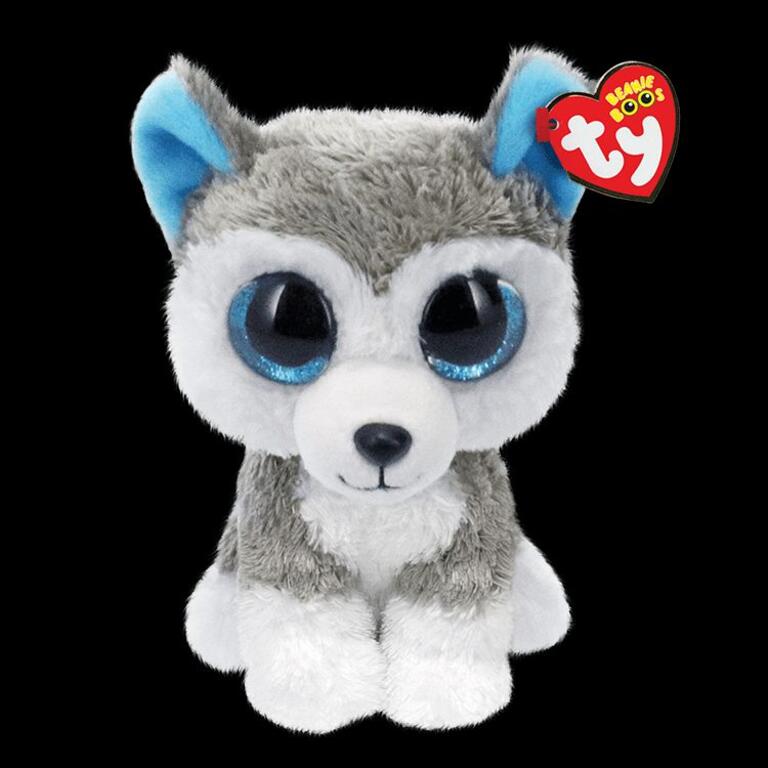 Cuddly white and grey fur; Includes official Ty Heart with birthday and poem; Made with super soft Ty Silk fabric; Sparkly blue Beanie Boo eyes