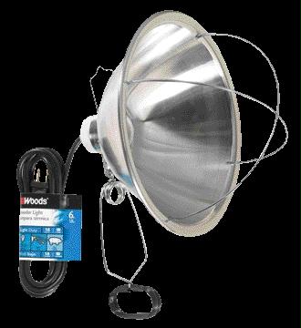 Easily hangs with built-in integrated hook hanger or positions flat. Works great for warming pigs chicks small farm animals garages workshops painters and more. Accepts up to 300-watt bulb with porcelain socketSpecifications